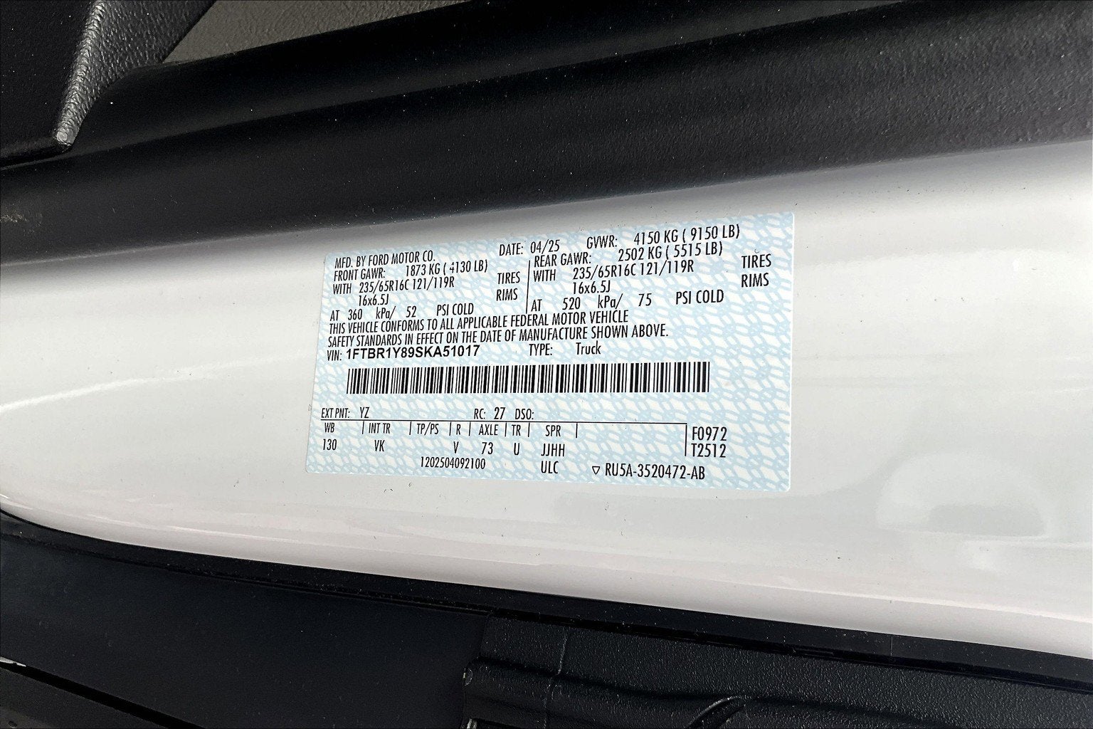 - Gross Axle Wt Rating - Front (lbs): 4130