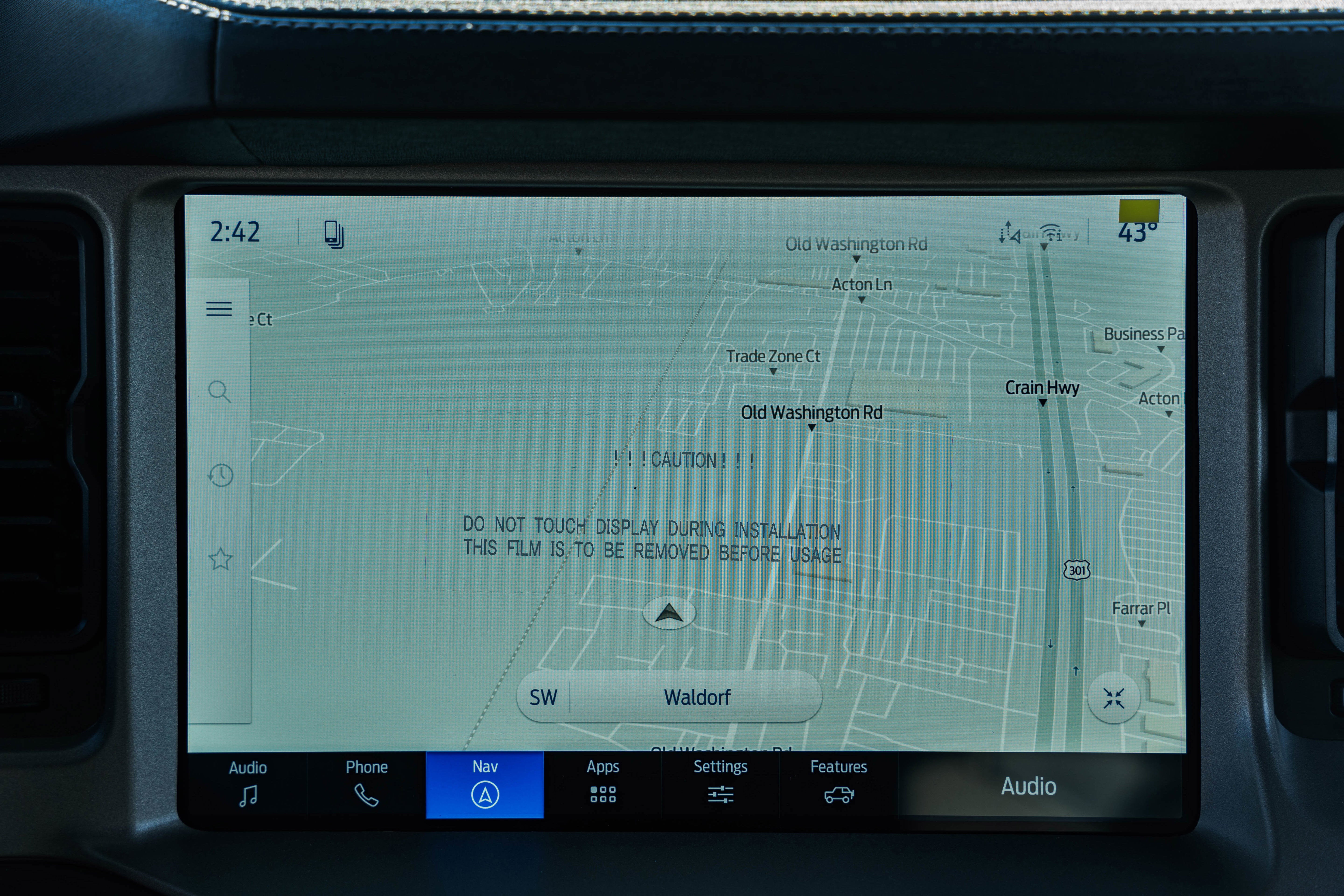 - Connected Navigation -inc: Ford connectivity package, pinch-to-zoom capability, live traffic, predictive destinations and route guidance and One Box search