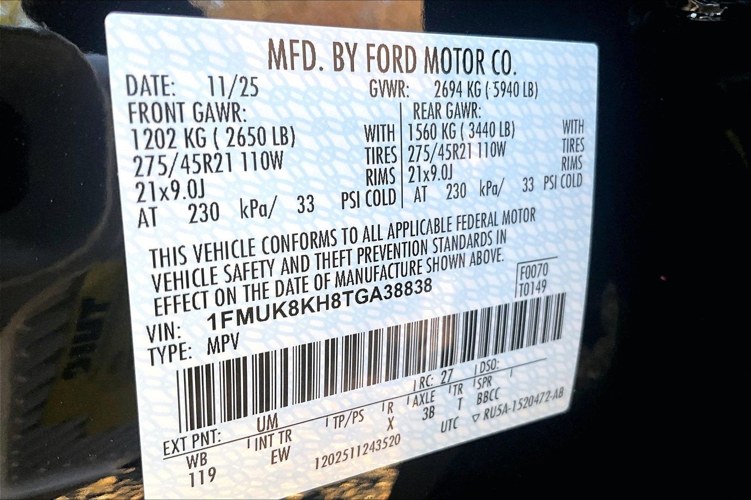 - Front Tire Size: P255/55VR20