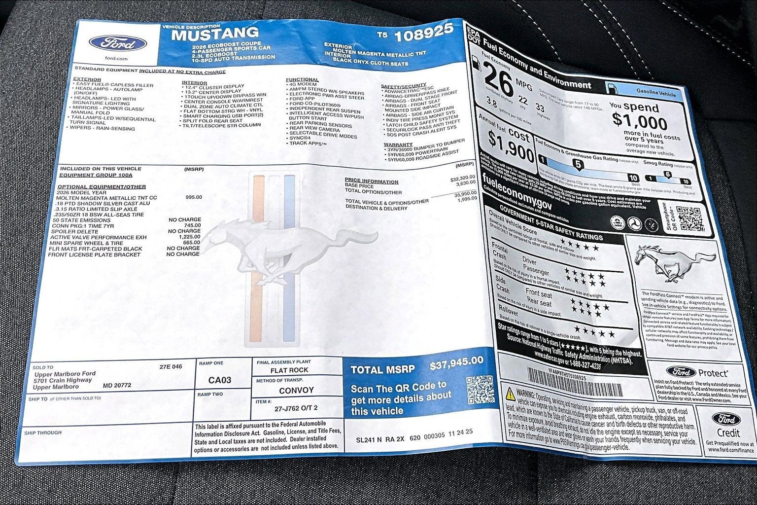 VISIT US ON THE WEB AT WWW.UPPERMARLBOROFORD.COM OR CALL AT 1-301-627-5600 All vehicles are subject to prior sale. Price may include all applicable manufacturer rebates, incentives, and special offers. See dealer for details. Price does not include taxes, tags and $799 processing charge (not required by law). Price includes: All vehicles are subject to prior sale. Price may include all applicable rebates, incentives, and special offers. See dealer for details. $500 - Retail Customer Cash. Exp. 03/31/2026