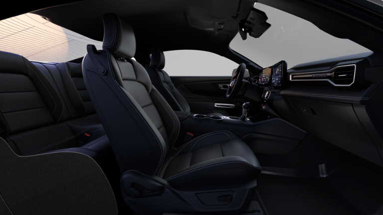Step inside the Mustang GT Premium, and you'll be greeted by a stunning Magnesium Framed Panoramic Curved Display, offering a seamless and immersive driving experience. The leather-wrapped steering wheel, Aluminum Foot Pedals, and Leather Shift Knob add a touch of refined elegance, while the SYNC 4 infotainment system keeps you connected and entertained.