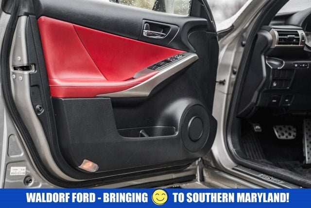 Open your door to the world of adventures with the sleek Atomic Silver 2016 Lexus IS. The Automatic 2.0L I4 Turbocharged is built for the long haul, and packed with features such as , F Sport Package (Aluminum Sport Pedals, Back-Up Camera w/Dynamic Gridlines, Black Headliner, F Sport Badging, F Sport Nuluxe Seat Trim w/Contrast Stitching, F Sport Tuned Suspension, Heated & Ventilated Front Sport Seats, LFA Inspired TFT Instrumentation, Perforated Leather Shift Knob, Silver Performance Trim, Stainless Steel Scuff Plates, Twin Projector LED Headlamps Low & High Beam, Unique Front Fascia/Grille, and Wheels: 18" F Sport Split 5-Spoke Aluminum Alloy), Navigation System Package (Auto-Dimming Rear View Mirror w/HomeLink, Lexus Enform App Suite, Lexus Enform Destinations, and Radio: Lexus Display Audio w/Navigation), and Rioja Red w/F Sport Nuluxe Seat Trim w/Contrast Stitching. If you think the pictures look pretty just wait until you see it in your driveway! This IS is big enough to fit everything you need for your day, plus whatever else life throws at you.