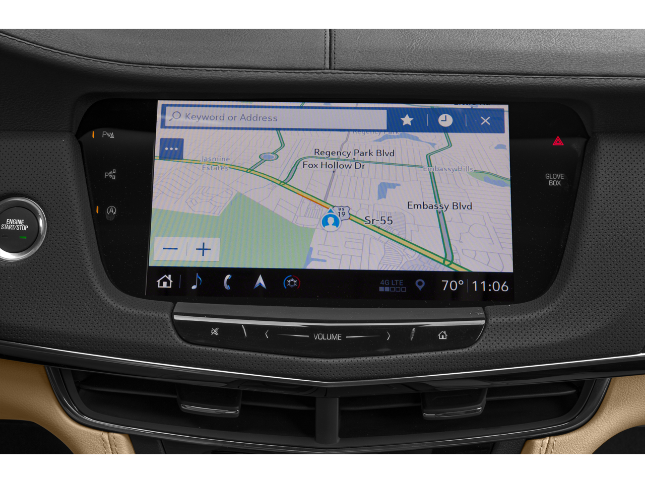 - Cadillac user experience with embedded navigation AM/FM stereo with connected navigation providing real-time traffic, 10.2" diagonal color information display, dual USB ports, auxiliary audio port, rotary infotainment controller, Natural Voice Recognition and Phone Integration for Apple CarPlay and Android Auto capability for compatible phone, Connected Apps and Teen Driver